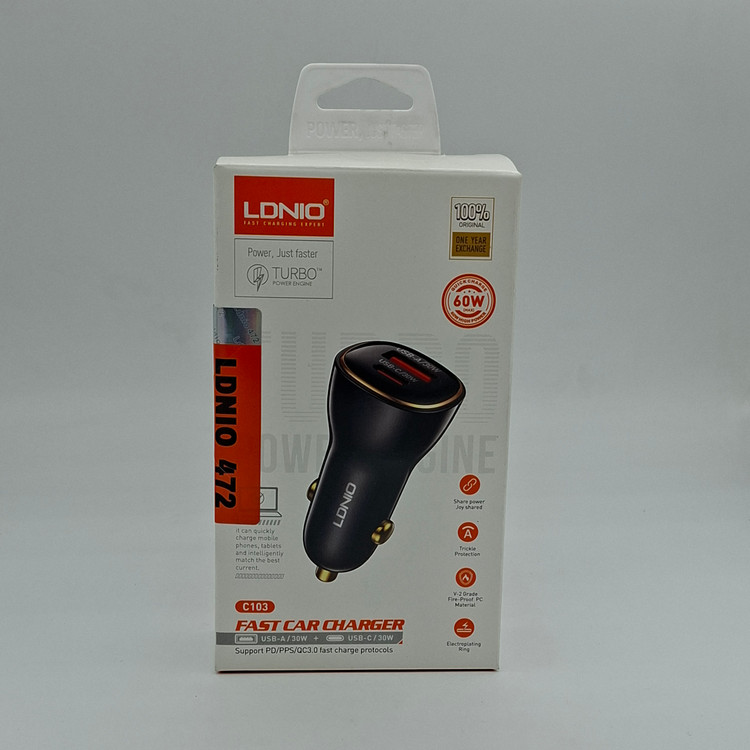 🚗 فندکی LDNIO مدل C103 – شارژر فندکی سریع ۶۰ وات برای خودرو