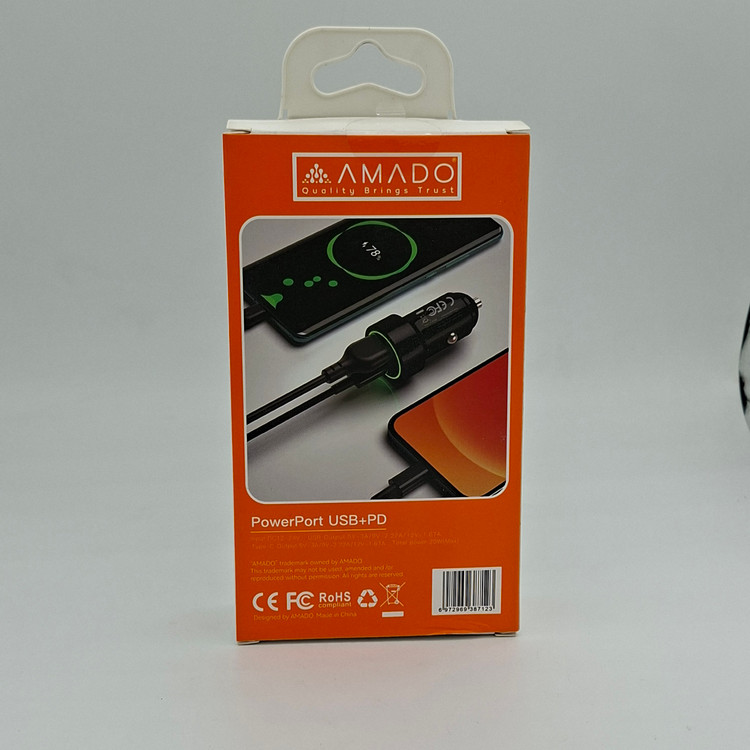 🚗 فندکی AMADO مدل AM04 – شارژر فندکی ۲۰ وات سریع و هوشمند