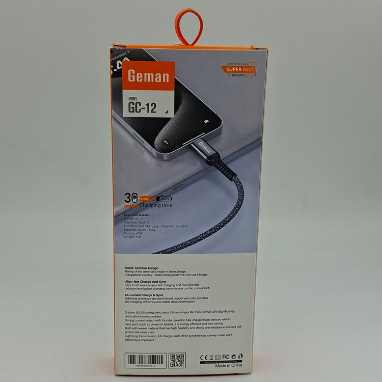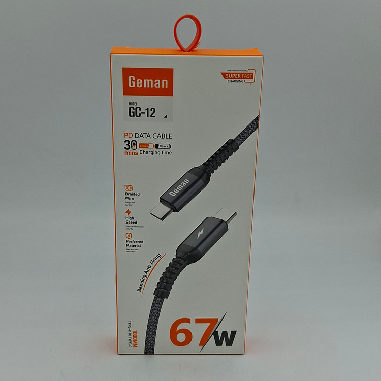 کابل شارژ سریع Geman مدل GC-12 یک کابل قدرتمند و باکیفیت برای کاربرانی است که به سرعت شارژ بالا و دوام طولانی اهمیت میدهند. این کابل با پشتیبانی از توان 67 وات، گزینهای عالی برای شارژ سریع گوشیهای هوشمند، تبلتها، لپتاپهای سازگار و سایر دستگاههای مجهز به درگاه Type-C محسوب میشود.